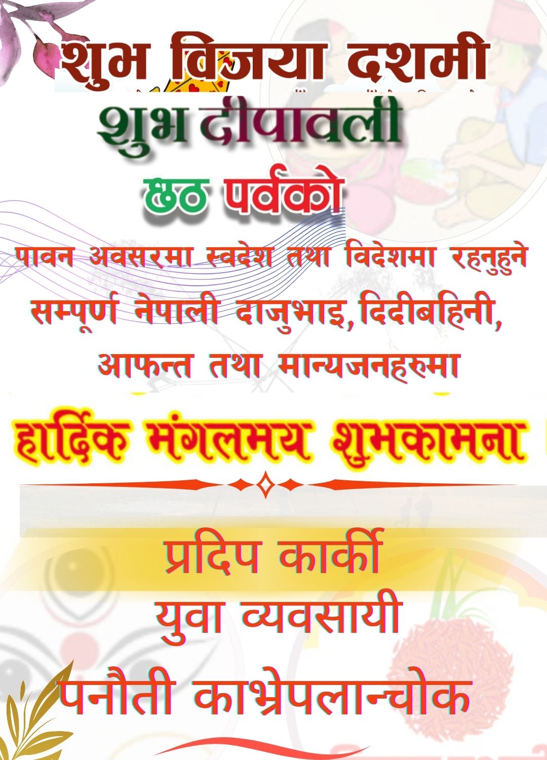 काभ्रे नेपाली कला, संस्कृति र मौलिक चाडपर्वको संरक्षण तथा प्रवर्द्धन गर्ने उद्देश्यसहित नेपाली कांग्रेस काभ्रेको सांस्कृतिक शाखाले “तीज जोडी फोटो प्रतियोगिता–२०८२” आयोजना गर्ने भएको छ। हरितालिका तीजको पावन अवसर पारेर... विस्तृतमा