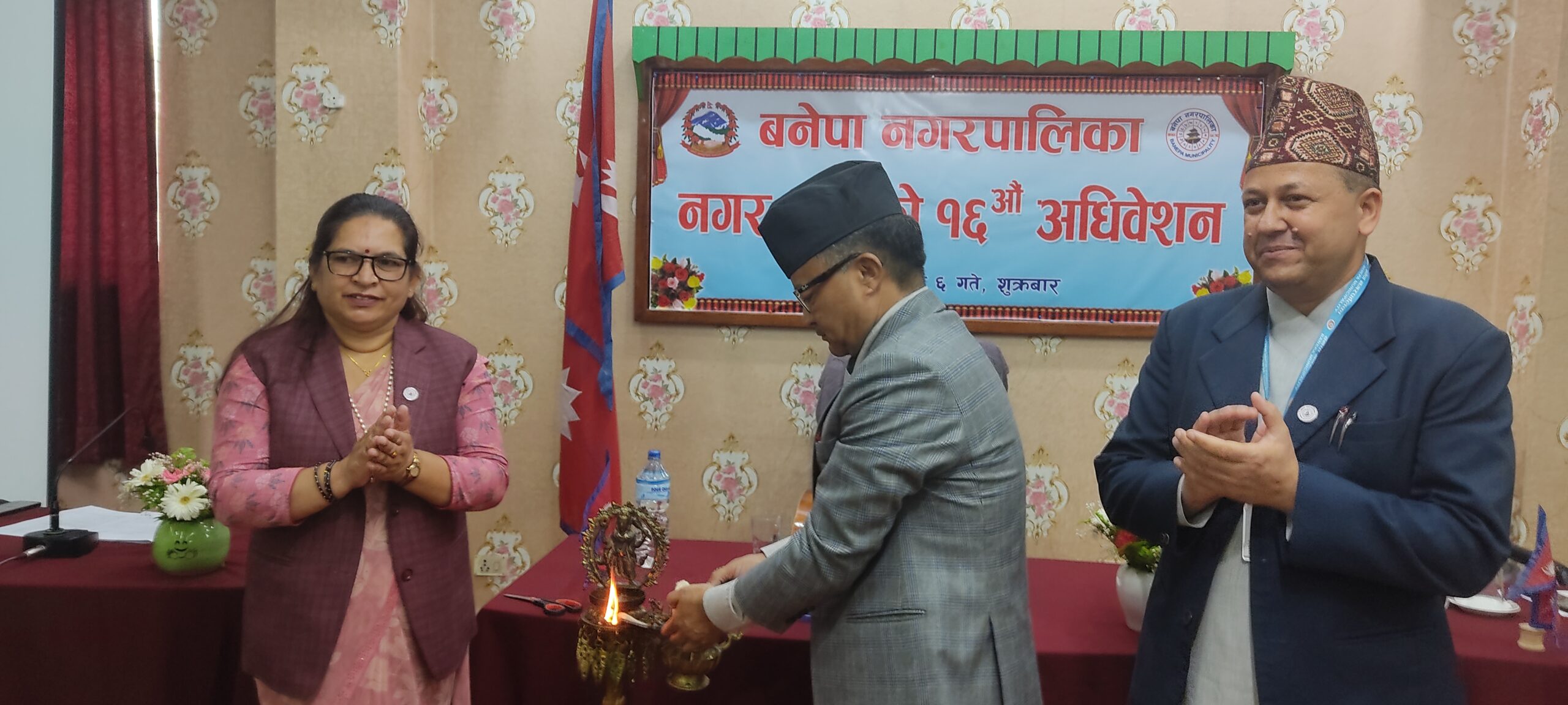 काभ्रेपलाञ्चाेक/ बनेपा नगरपालिकाको १६ औँ नगरसभा नगरपालिकाको सभा हलमा सुरु भएको छ। सभामा नगर प्रमुख शान्तिरत्न शाक्यले आगामी आर्थिक वर्षका लागि प्रस्तावित नीति तथा कार्यक्रम प्रस्तुत गरेका छन् ।