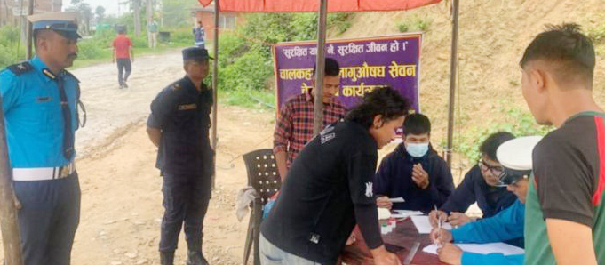 काभ्रेपलाञ्चोक/ लागुपदार्थ सेवन गरी सवारी चलाउने तीन जना चालकलाई प्रहरीले नियन्त्रणमा लिएको छ । जिल्ला ट्राफिक प्रहरी कार्यालय काभ्रेले बनेपाको साँगामा शुक्रबार गरेको चेकजाँचका क्रममा लागूपदार्थ सेवन गरी सवारी साधन चलाउँदै गरेका ३ जना चालकलाई नियन्त्रणमा लिएको हो ।